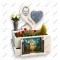 Описание: Очень светлая и многослойная композиция. Стела состоит из двух наложенных друг на друга белых сердец, на левом (заднем) размещен черно-белый портрет улыбающегося малыша. Справа на переднем плане прикреплено контрастное объемное серо-голубое сердце.