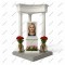 Особенности: Мраморный комплекс установлен на платформу из серого гранита, что создает красивый контраст. У подножия разбит небольшой цветник, а по бокам симметрично расположены две высокие золотистые вазы с красными розами.