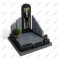 Мемориальный комплекс МК-102 выделяется ультрасовременным, асимметричным дизайном, построенным на геометрии и контрасте фактур. Центральная гладкая черная стела с ростовым портретом окружена ступенчатыми блоками из светло-серого камня, которые визуально напоминают стилизованные лучи света или распахнутые крылья.