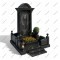 Мемориальный комплекс МК-173 выполнен в строгом античном стиле, напоминая портал величественного храма. Центральная стела с портретом в полный рост фланкирована массивными колоннами и увенчана фронтоном с резным декором. Черный гранит подчеркивает торжественность и монументальность всей конструкции.