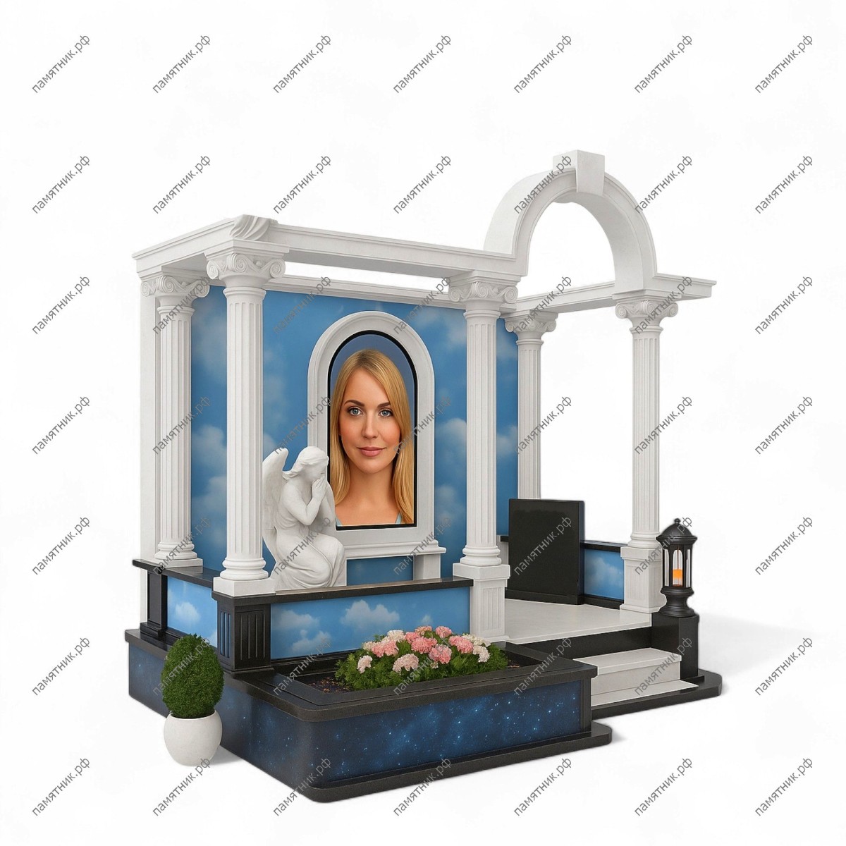 Мемориальный комплекс МК-22 представляет собой светлый и воздушный павильон, уникальность которого заключается в художественном оформлении задней стенки в виде ясного неба с облаками. Эта деталь в сочетании с белоснежной скульптурой молящегося ангела придает мемориалу особую одухотворенность и светлую грусть.