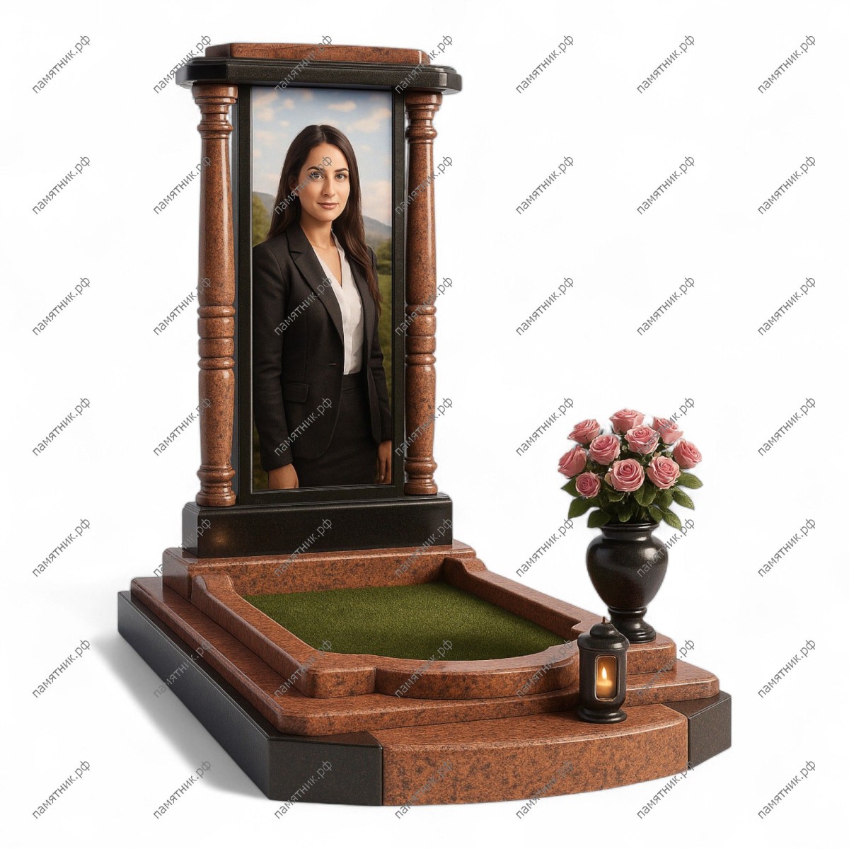 Мемориальный комплекс МК-226 выполнен в архитектурном стиле классического портика. Две изящные колонны из красно-коричневого гранита поддерживают массивный карниз, обрамляя вертикальную стелу с портретом. Основание комплекса оформлено в виде открытого газона, окруженного ступенчатым бордюром.
