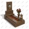 Мемориальный комплекс МК-236 выполнен в едином цвете из насыщенного коричневого гранита с выраженной текстурой. Высокая прямоугольная стела установлена на трехъярусный постамент, акцентируя внимание на овальном портрете в золотой раме. Длинный и узкий интегрированный цветник подчеркивает стройность композиции.