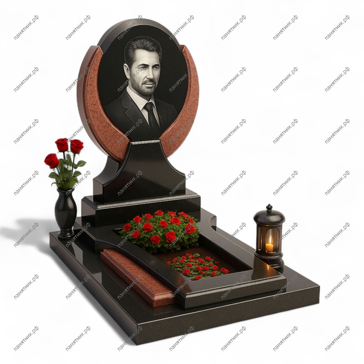 Мемориальный комплекс МК-252 отличается оригинальным геометрическим дизайном, построенным на контрасте черного и красно-коричневого камня. Круглый черный медальон с портретом вписан в массивное кольцо из красного гранита, что символизирует бесконечность памяти.