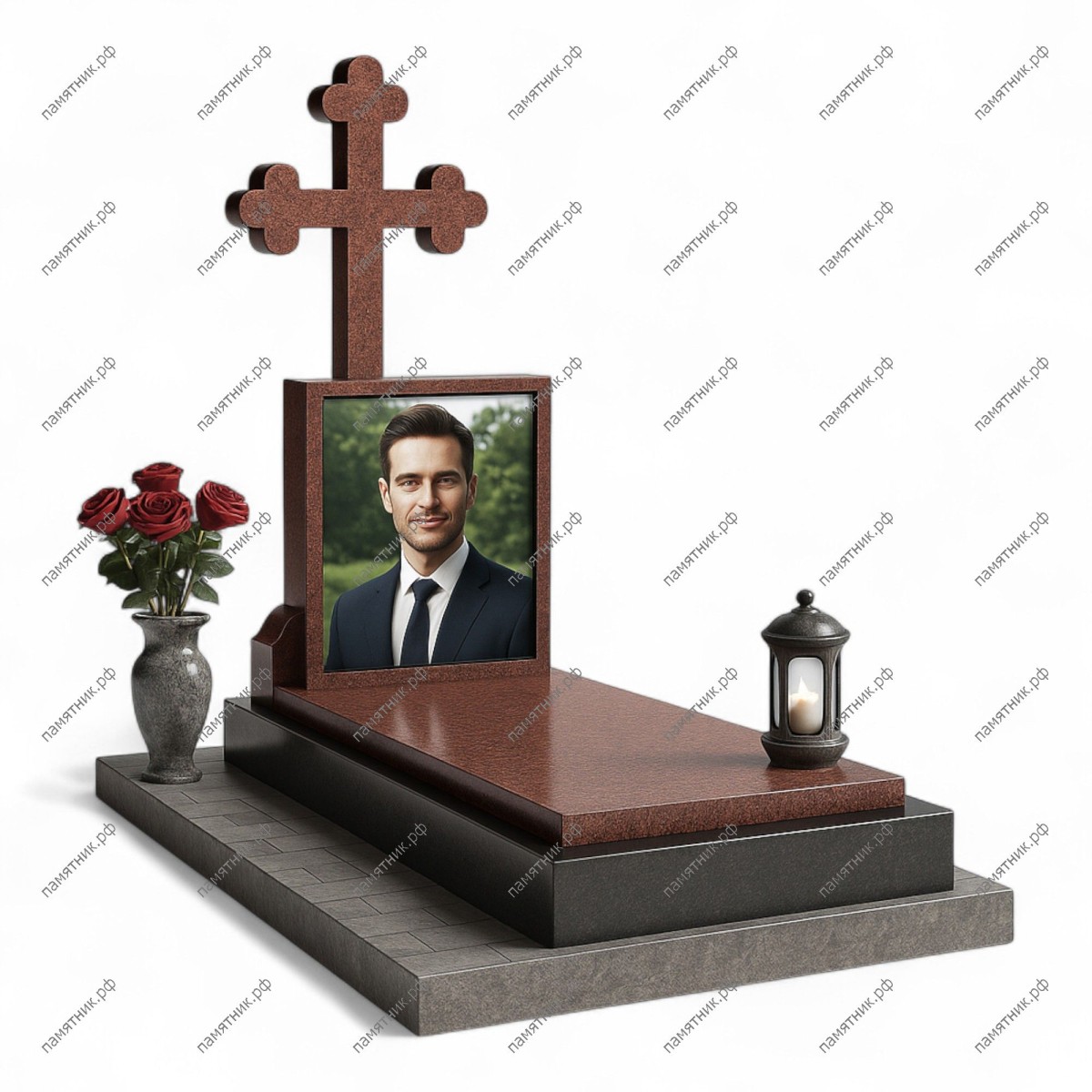 Мемориальный комплекс МК-278 — это строгое и торжественное сочетание красного и черного гранита. Компактная стела в виде рамки для портрета увенчана массивным крестом «клеверной» формы. Широкая надгробная плита и основание, имитирующее брусчатку, придают комплексу завершенный вид.
