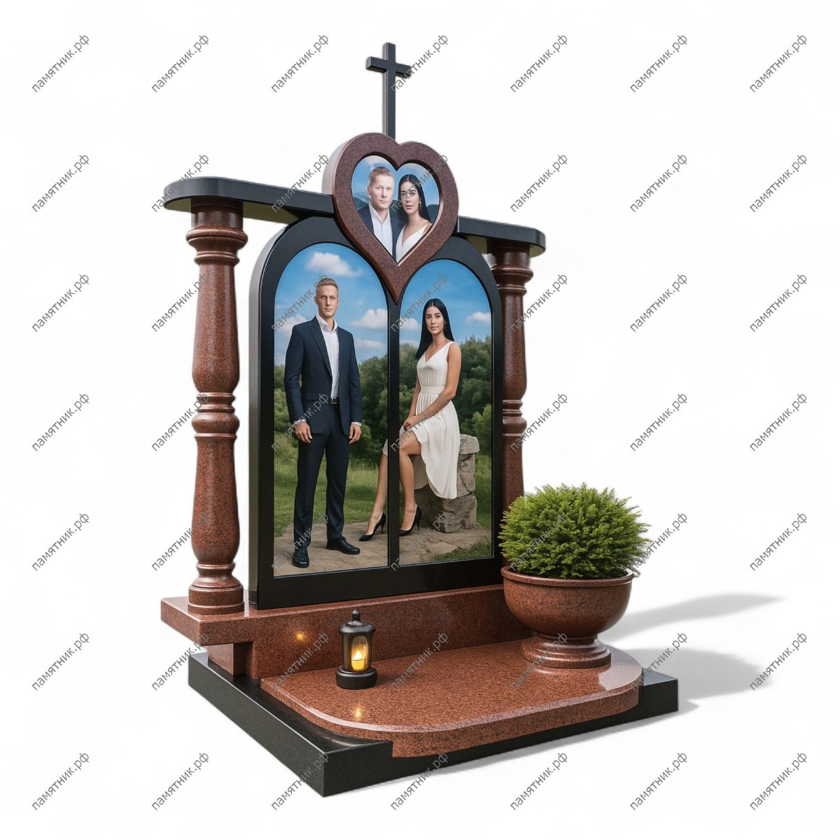 Мемориальный комплекс МК-336 — это сложная архитектурная форма, выполненная в стиле портала или триумфальной арки. Массивные круглые колонны поддерживают карниз, в центре которого расположено дополнительное портретное окно в форме сердца. Особую эстетику комплексу придает крупная каменная чаша для растений, установленная на переднем плане.