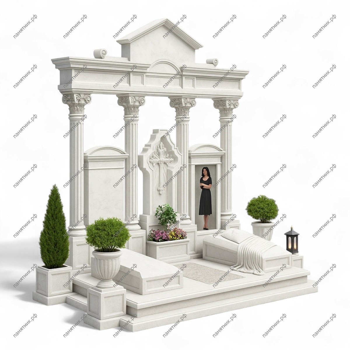 Мемориальный комплекс МК-37 — это грандиозный дворцовый ансамбль для семейного захоронения (на два места). Величественный портал с колоннами обрамляет центральную стелу с искусным резным крестом. Особую художественную ценность представляет правое надгробие, оформленное в виде ложа с мастерски вырезанным из камня покрывалом (плащаницей).