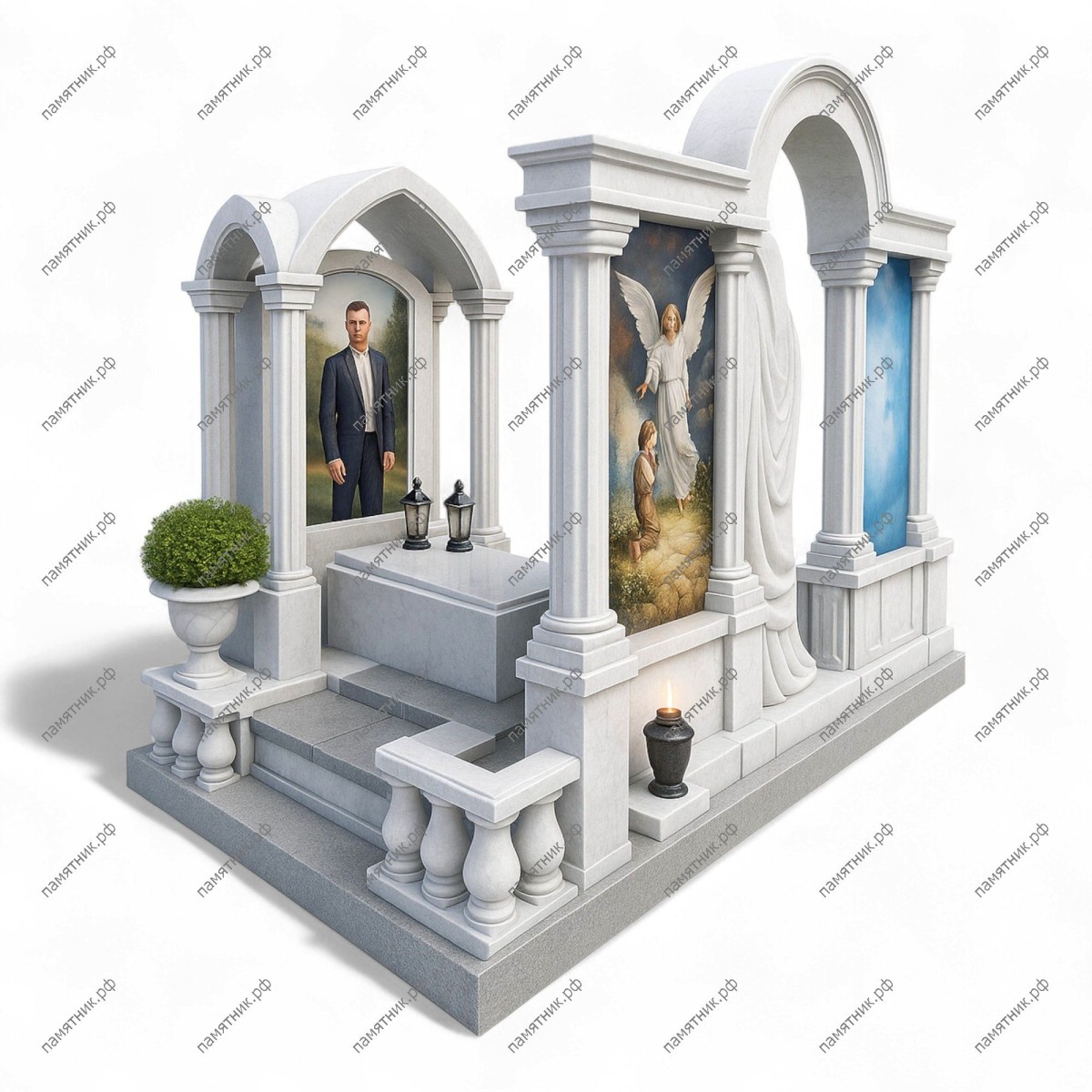 Мемориальный комплекс МК-46 — это уникальный асимметричный мемориал из белого мрамора. Левая часть выполнена в виде классической арочной ниши с портретом и закрытым надгробием. Правая, более масштабная часть комплекса, привлекает внимание живописным панно (или цветной фотокерамикой) с изображением ангела, украшенным искусной скульптурной драпировкой.