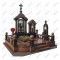 Мемориальный комплекс МК-67 — это нестандартное решение для благоустройства семейного захоронения (на три места). Композиция из красного и черного гранита включает три раздельные арочные стелы с крестами. Оригинальность комплексу придает уникальная ограда с провисающими, словно канаты, фигурными перилами.