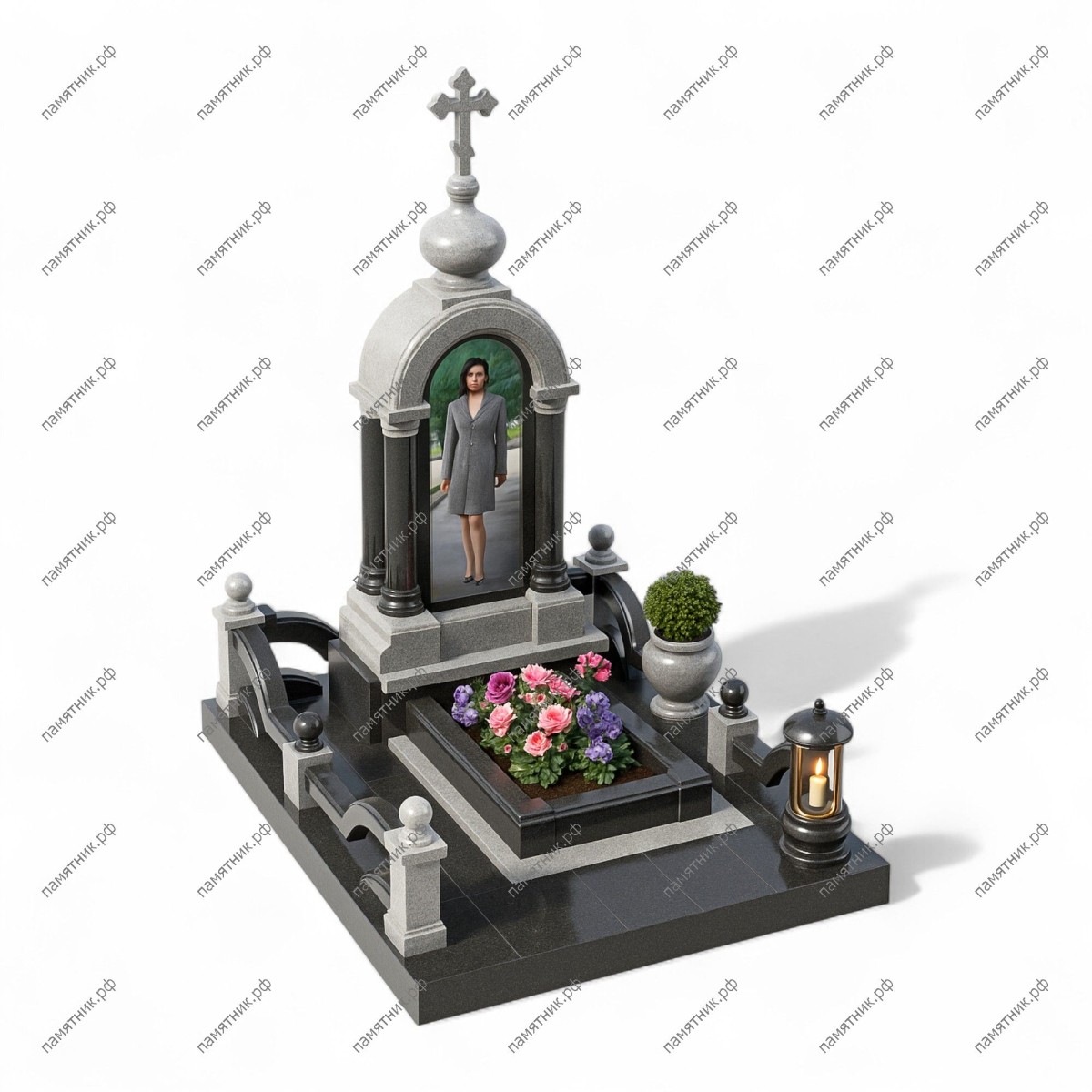 Мемориальный комплекс МК-76 стилизован под традиционную православную часовню (кивот). Сочетание светло-серого текстурного и черного полированного гранита придает мемориалу выразительность. Арочный свод увенчан миниатюрным каменным куполом с крестом, символизирующим духовную защиту.