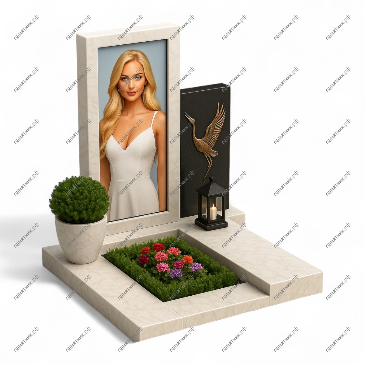 Мемориальный комплекс МК-93 — это воплощение современного минимализма и глубокого символизма. Асимметричная композиция состоит из светлой рамки для портрета и строгого черного блока, украшенного бронзовым барельефом взлетающего журавля — символа бессмертия и светлой души.