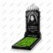 - Особенности: Венчает конструкцию массивный, объемный купол мечети из светлого скульптурного гранита. На лицевой поверхности выгравирована красивая декоративная рамка (арабеска), огибающая портрет, полумесяц и традиционные надписи.