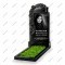 Роскошный, полностью черный памятник с потрясающей барельефной резьбой. Навершие стелы выполнено в форме объемного купола мечети с небольшим декоративным элементом справа.