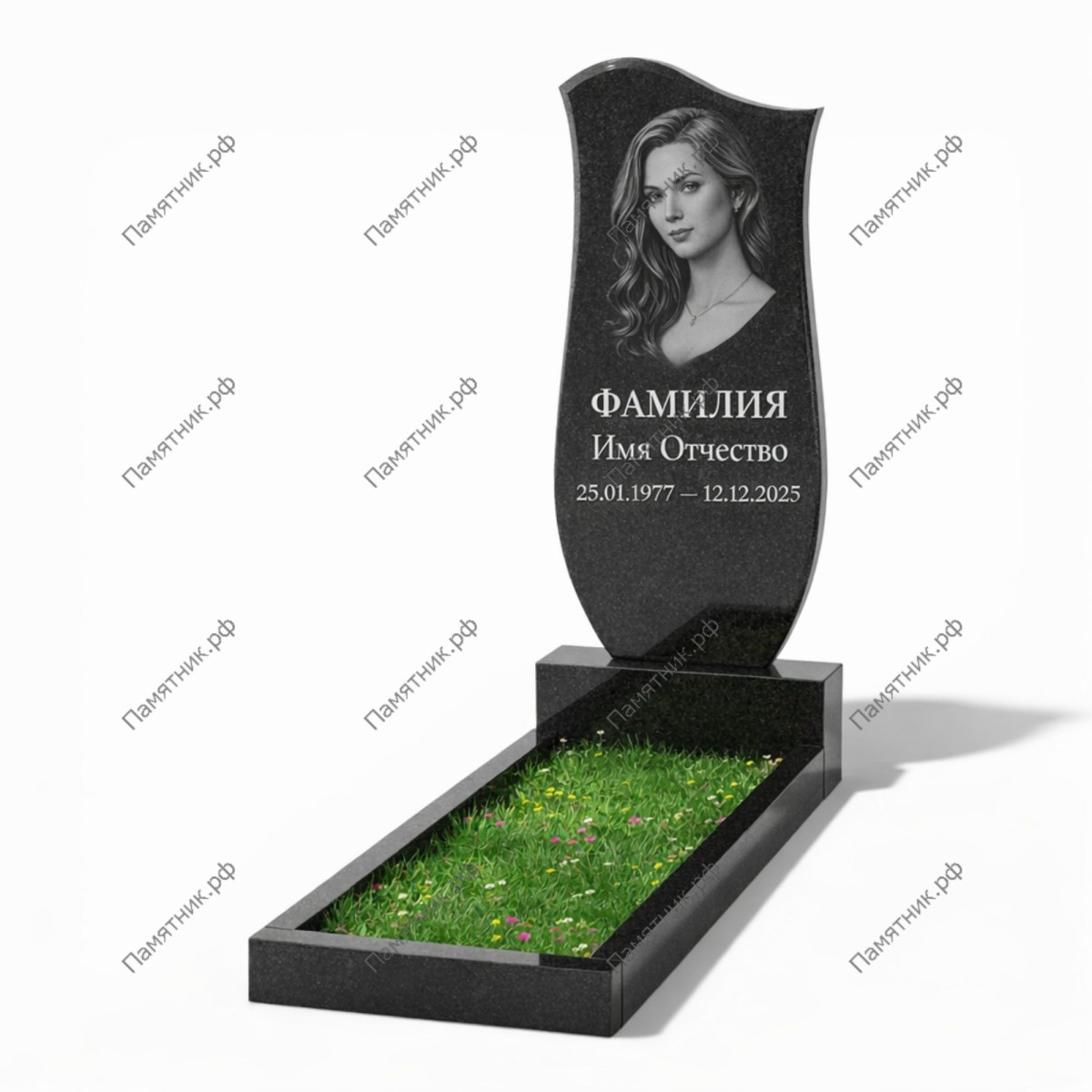 Форма модели универсальна и подходит для оформления любого захоронения. Стела поставляется в комплекте с тумбой и стандартным открытым цветником.