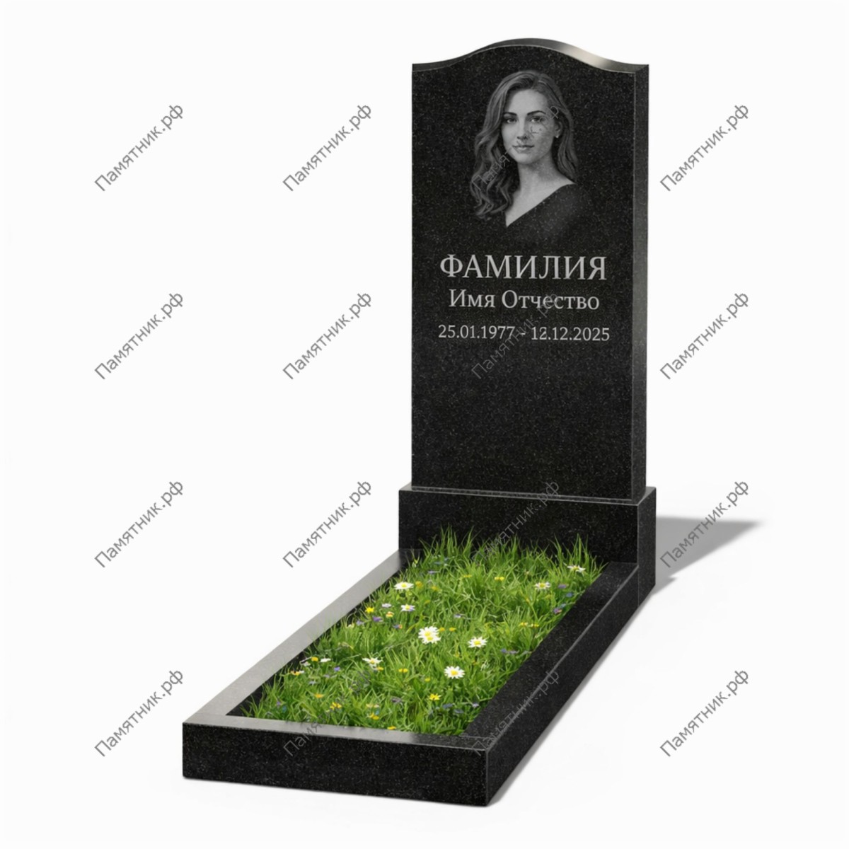 Традиционная форма стелы — это проверенное временем решение, которое всегда выглядит достойно. В комплект поставки входит гранитная тумба и стандартный открытый цветник.