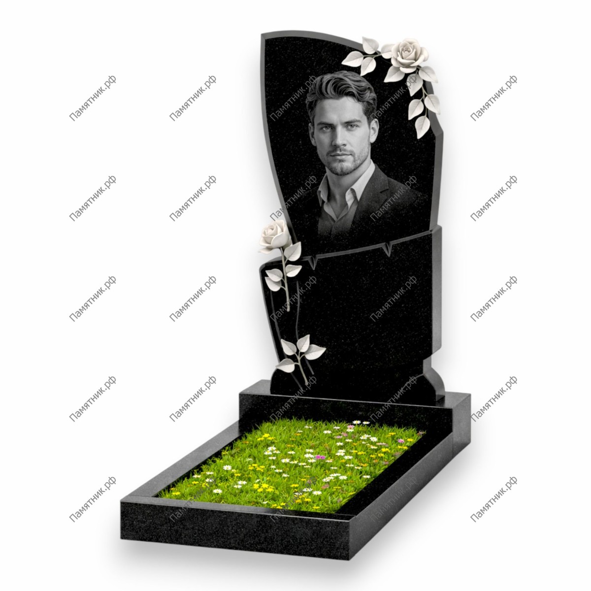 Уникальная модель с глубоким философским подтекстом. Стелу разделяет декоративный поперечный разлом, сквозь который пробивается и устремляется вверх резная ветвь роз, расцветая на самой вершине. Этот монумент — мощный символ того, что светлая память, жизнь души и настоящая любовь способны преодолеть любые преграды, даже смерть. Оригинальная форма выделяет памятник, делая его по-настоящему особенным.