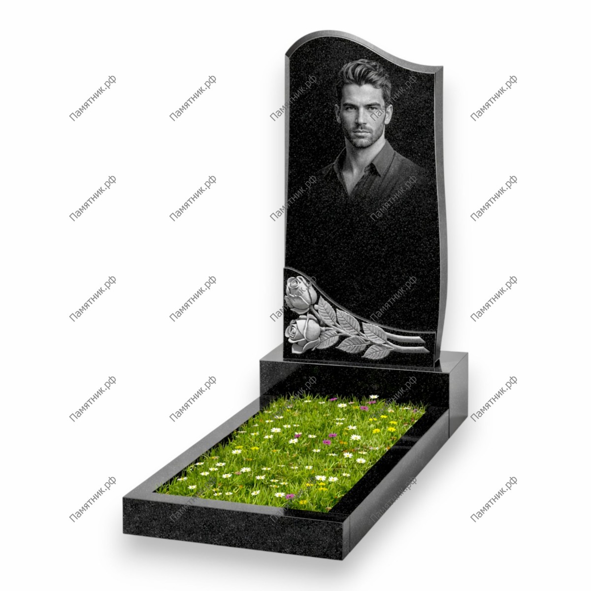 Сдержанный и элегантный монумент с асимметричным волнообразным верхом. Главным украшением выступает рельефная ветвь с двумя крупными розами, расположенная в нижней левой части стелы. Бутоны аккуратно пересекают границу камня, создавая легкий эффект объема. Эта минималистичная модель отлично подойдет тем, кто ищет лаконичный дизайн с тонким художественным акцентом.
