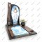 Элегантный памятник в темных тонах с «небесной» тематикой. Вертикальная стела с изогнутым верхом содержит портрет на фоне облаков и лестницы в небо. Этот мотив зеркально повторяется в стеклянной вставке горизонтальной плиты.