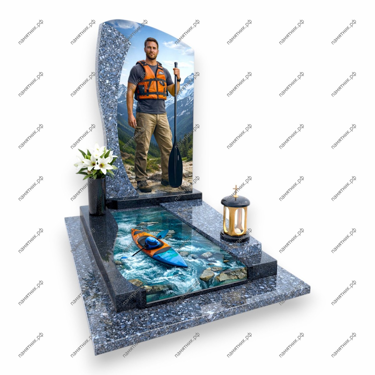 Тематический мемориал ПС-122 посвящен человеку, влюбленному в горы и водную стихию. Стела из серого гранита служит фоном для портрета на фоне заснеженных вершин, а в горизонтальную часть памятника интегрирована объемная стеклянная инсталляция с байдаркой на бурной горной реке.