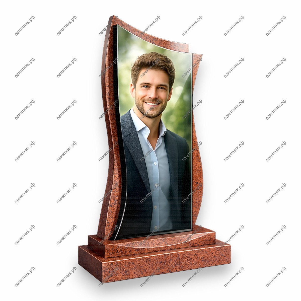 Элегантная вертикальная модель из терракотового гранита. Плавные изгибы боковых граней напоминают языки пламени, а большое стеклянное полотно позволяет максимально детально передать образ.