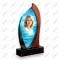 Стильный памятник в форме лепестка или пламени. Сочетание черного основания и оранжевого гранитного контура обрамляет овальное стекло с ярким морским пейзажем, создавая ощущение тепла и вечного движения.
