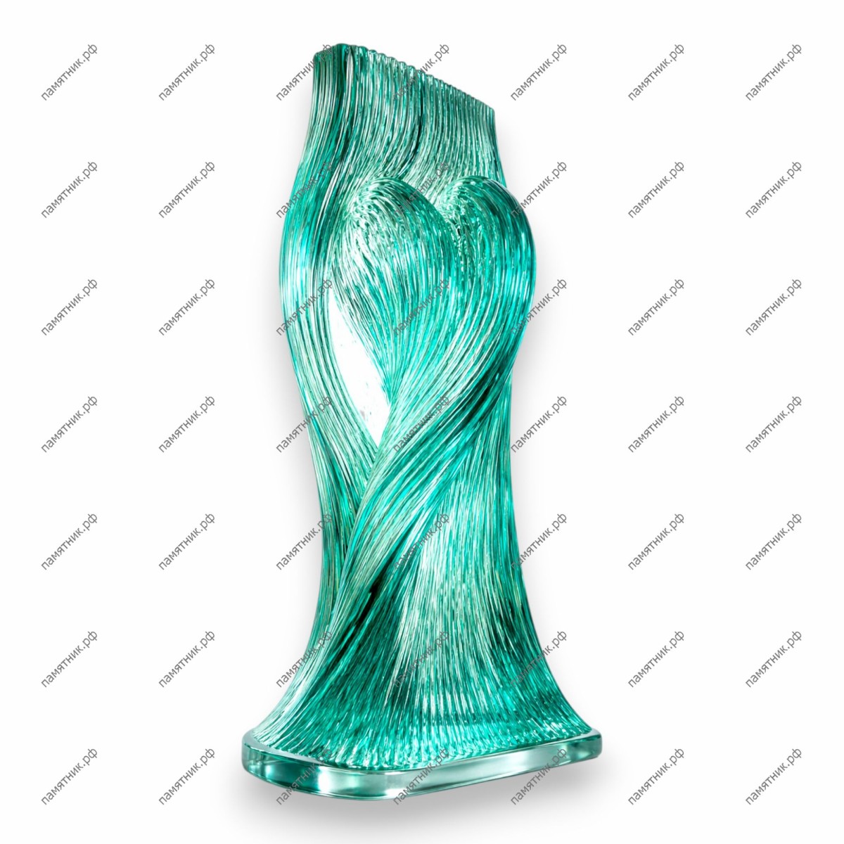 Памятник со стеклом ПС-21 — это уникальная художественная стела из бирюзового многослойного стекла, выполненная в форме застывшего пламени или развивающейся ткани. Внутренняя вертикальная текстура стекла создает эффект бесконечного движения и игры света, делая монумент визуально легким и возвышенным.
