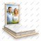 Светлый мемориальный комплекс в классическом стиле. Крупное стеклянное полотно с семейным портретом заключено в массивную раму из бежевого мрамора, а многоступенчатое белоснежное основание придает памятнику торжественный и возвышенный вид.