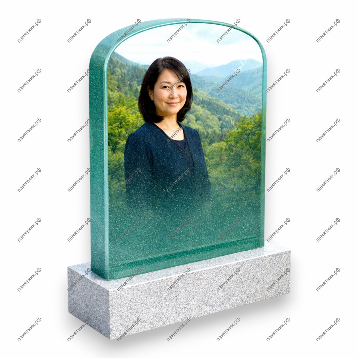 ПС-42 — это воплощение минимализма и легкости. Почти вся площадь надгробия выполнена из художественного стекла с деликатными внутренними вкраплениями («эффект звездного неба»). Фотореалистичный пейзаж на фоне портрета плавно сливается с окружающим пространством.