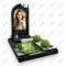 Современный мемориальный комплекс ПС-93 в стиле минимализма. Строгая арочная стела из черного гранита дополнена ландшафтным оформлением основания: сочетание белой гальки, декоративных вечнозеленых растений и стеклянной вставки с лесным пейзажем.