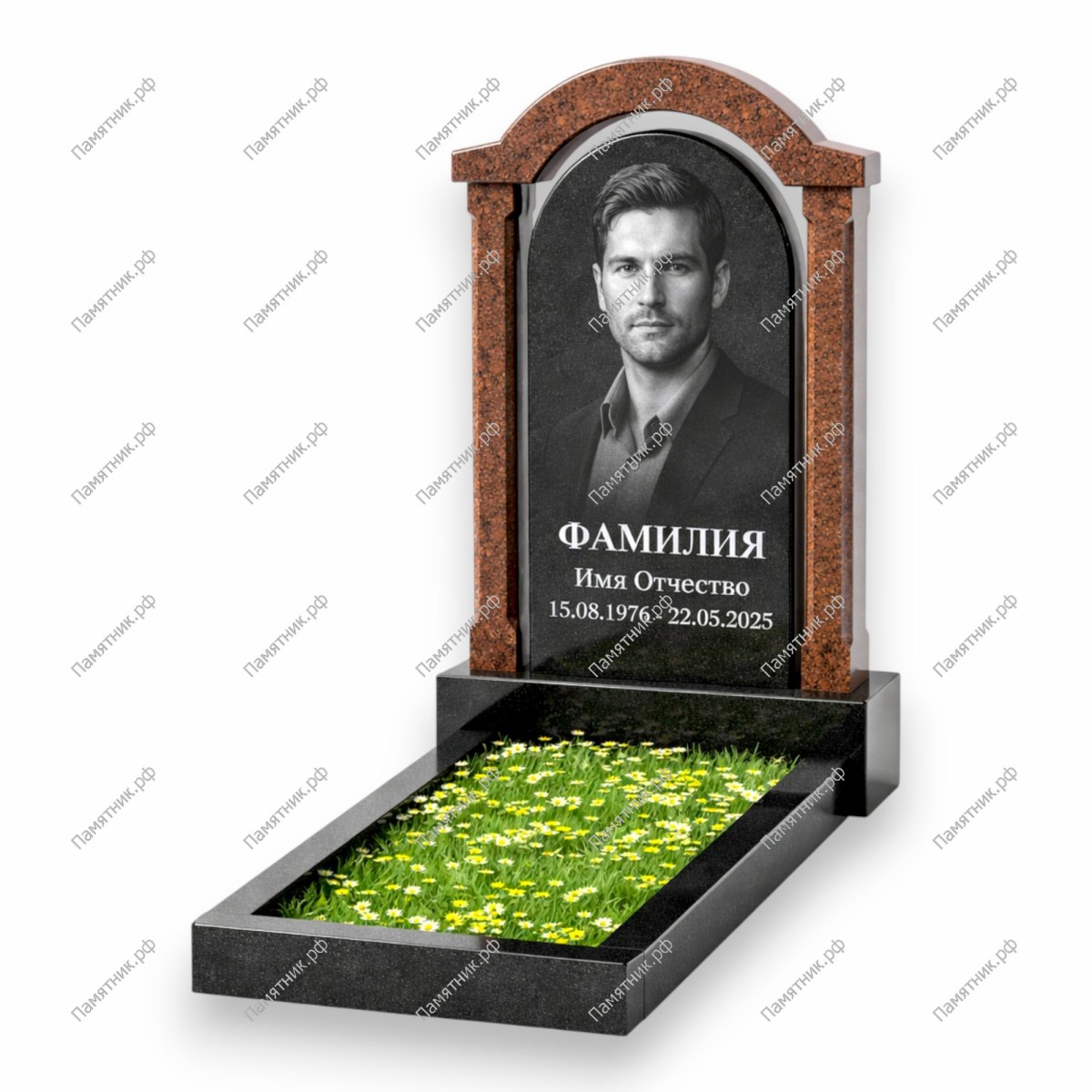 Памятник-арка А-16 отличается более выраженным, глубоким изгибом арки, что придает стеле особую одухотворенность. Все детали комплекта (стела, подставка и цветник) выполнены из карельского гранита высшего сорта. Черный цвет камня служит великолепным фоном для портрета, создавая эффект «живого» взгляда.