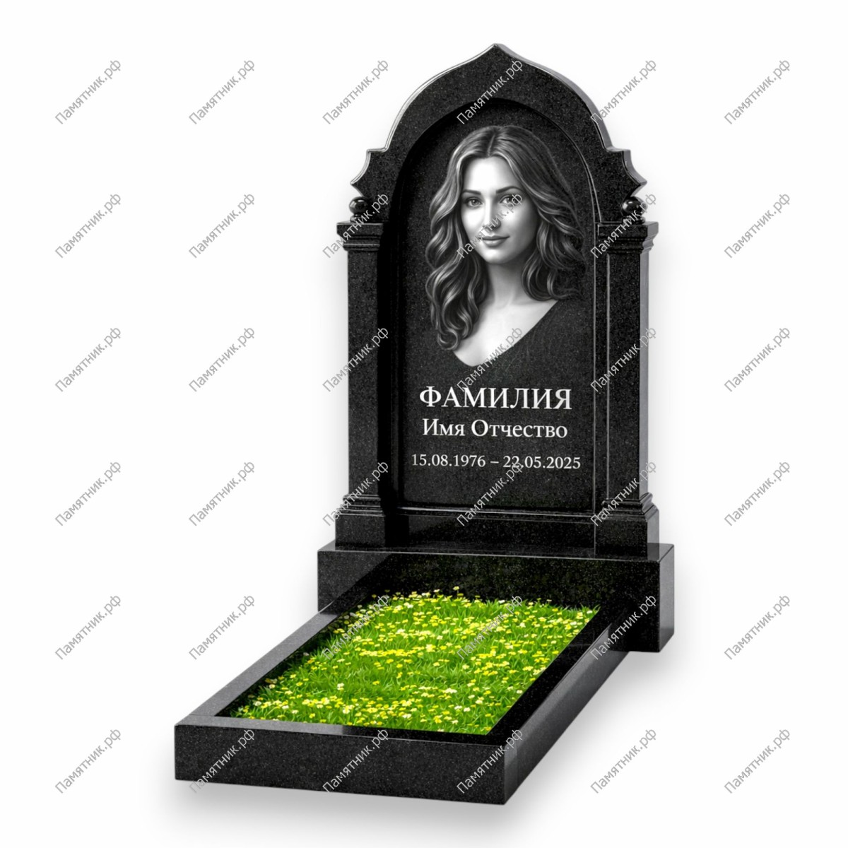 В комплект входит стела, широкая тумба и цветник из трех гранитных брусьев. Карельское происхождение камня гарантирует его устойчивость к климатическим нагрузкам. Благодаря качественной полировке, памятник всегда выглядит опрятно и торжественно, требуя лишь периодического протирания от пыли.