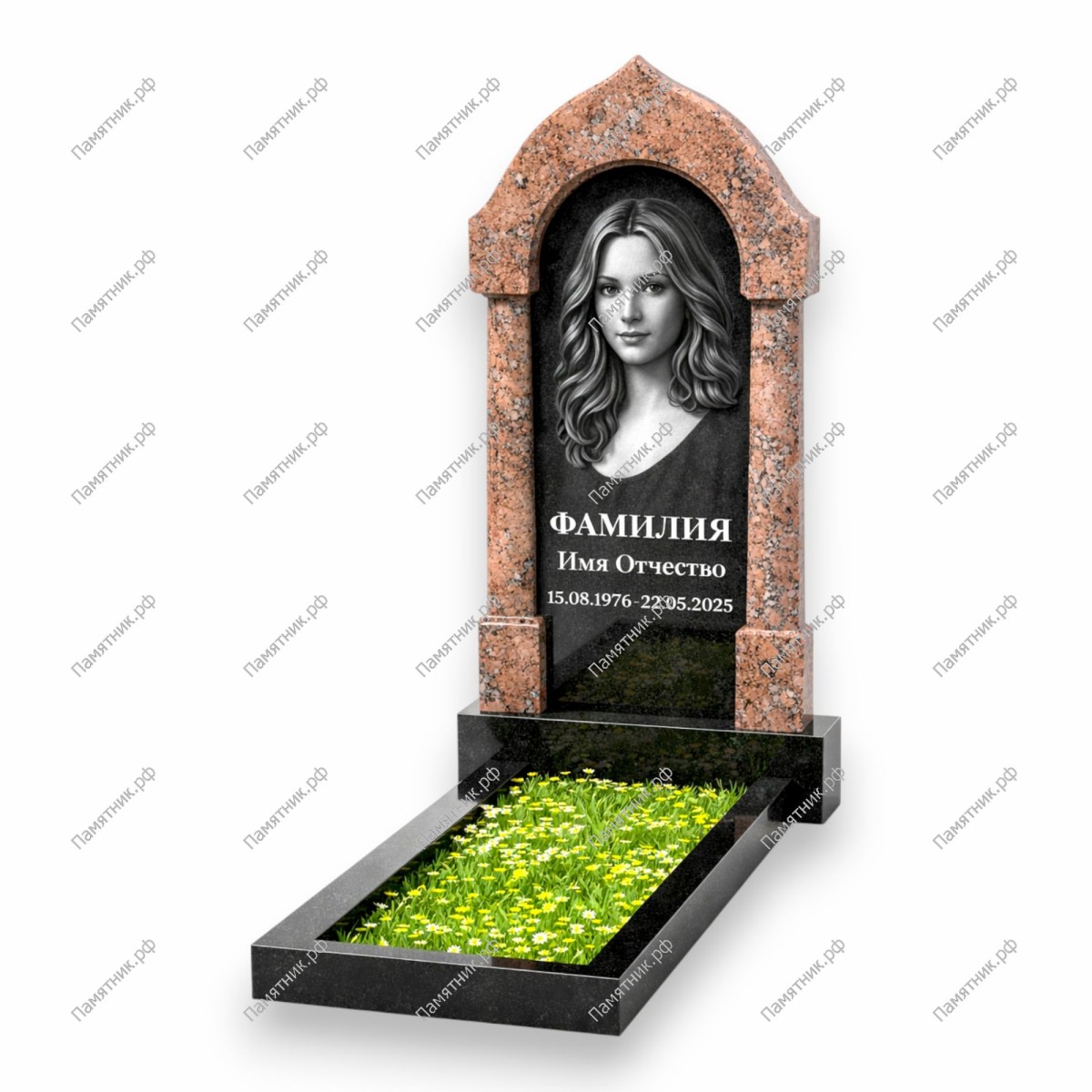 Памятник-арка А-32 выполнен в стиле классического фронтона с мягким арочным изгибом. Выраженные боковые «плечики» создают четкий контур, напоминающий вход в священное пространство. Это достойный и солидный выбор для тех, кто хочет подчеркнуть статусность и незыблемость мемориала.
