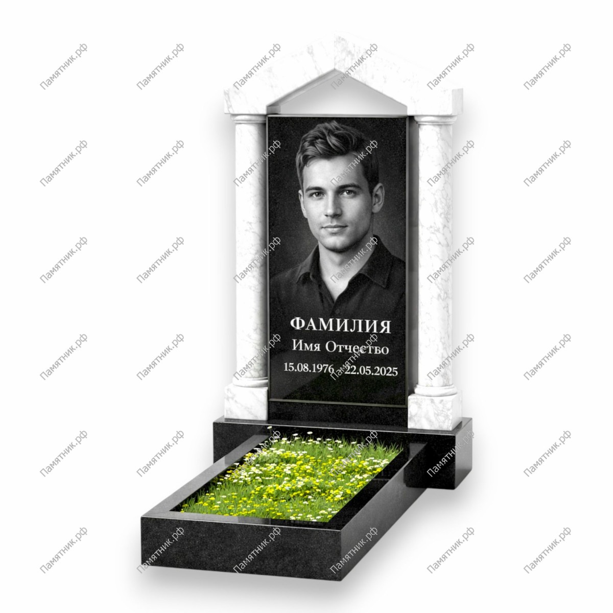 Все элементы комплекта (стела, подставка, цветник) выполнены из цельного блока Габбро-диабаза и проходят многоэтапную полировку. Насыщенный черный цвет камня служит лучшим фоном для портретов, создавая эффект глубины. Цветник из натурального гранита позволяет аккуратно оформить территорию захоронения.