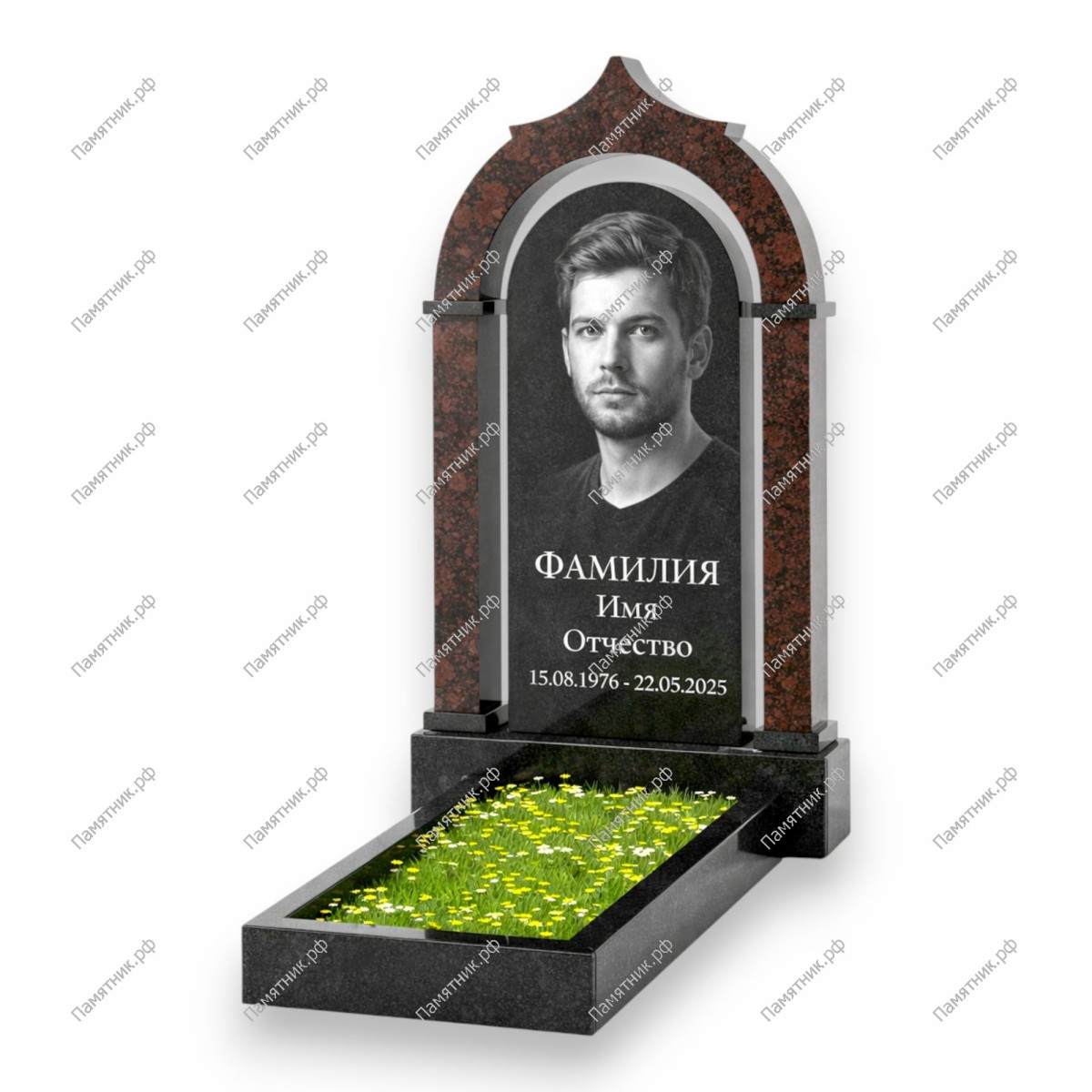 Стела, тумба и цветник выполнены из единого блока карельского камня. Габбро-диабаз обладает эталонной плотностью, что исключает впитывание влаги и разрушение льдом. Зеркальная полировка фасок подчеркивает статусность изделия и облегчает уход за ним.