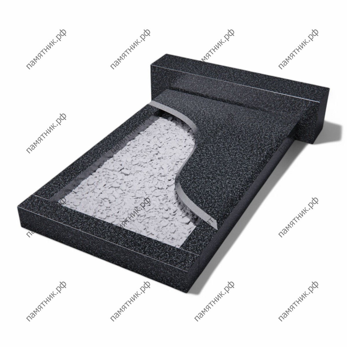 Современная асимметричная плита из габбро-диабаза с динамичным дизайном. Широкий волнообразный срез по правой стороне создает красивое пространство для декоративного оформления участка.