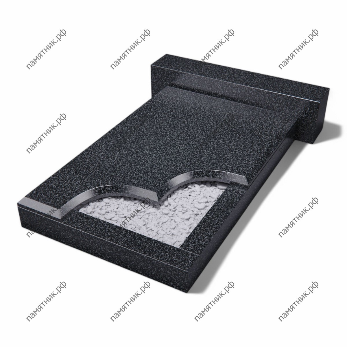 Современная асимметричная надгробная плита из габбро-диабаза. Изящный дугообразный вырез в угловой части создает стильный визуальный акцент и оставляет аккуратное место для декоративного оформления.