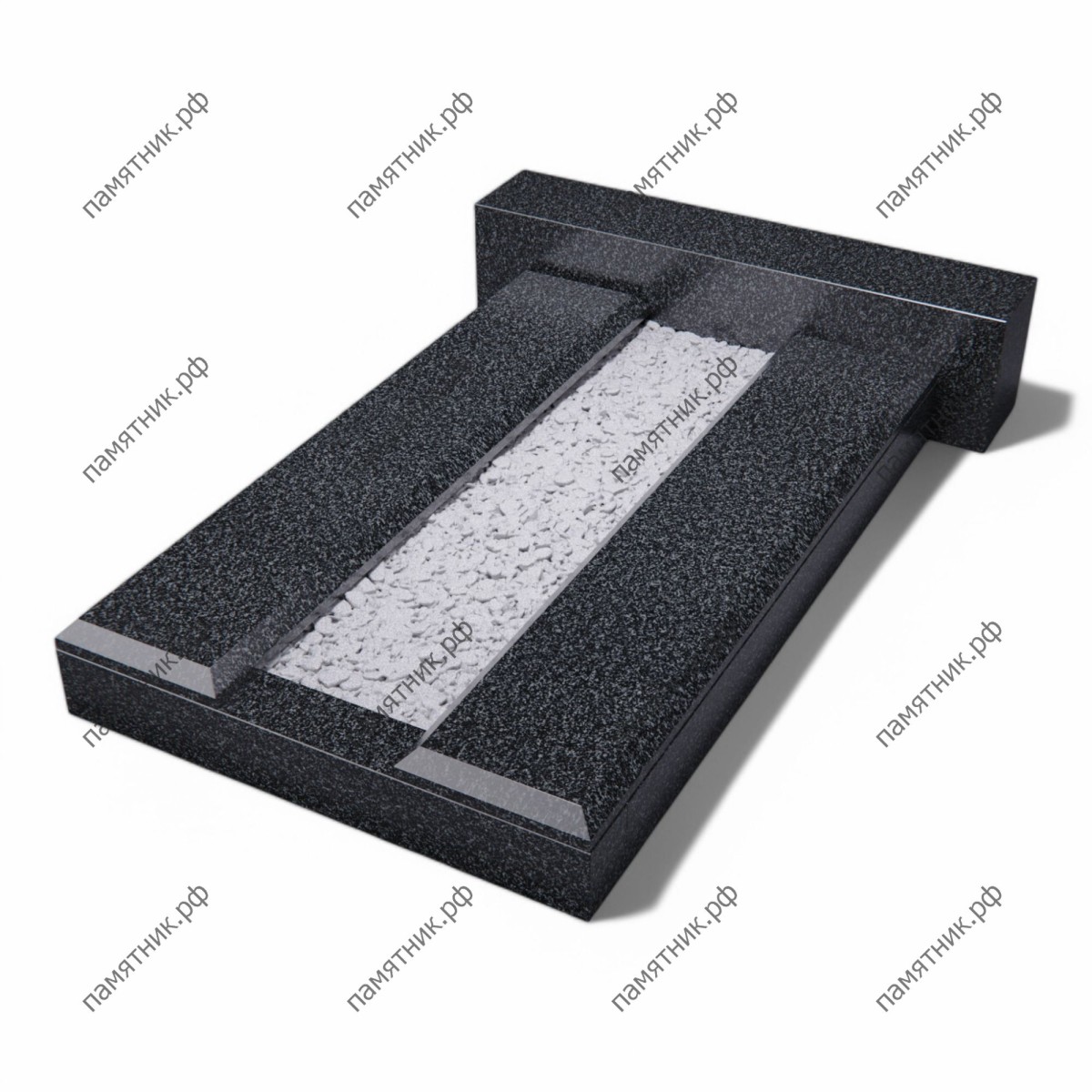 Массивная и строгая надгробная плита из габбро-диабаза, выполненная в виде мощной рамы с широкими продольными бортами. Классический, основательный дизайн, идеально подходящий для строгих мужских или воинских захоронений.