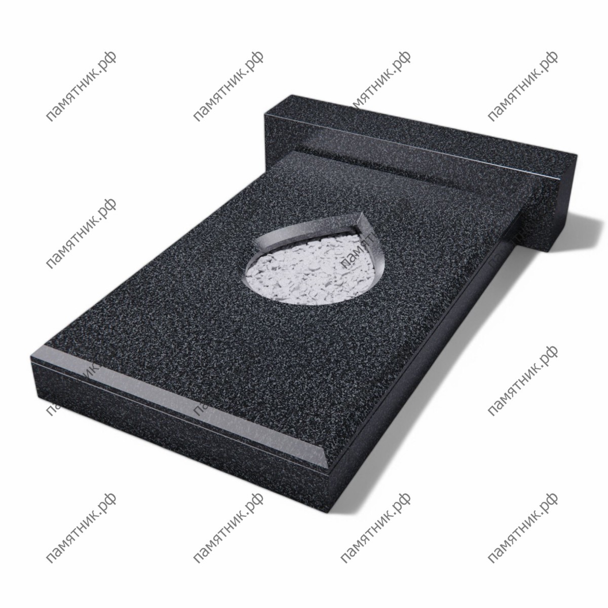 Элегантная, преимущественно закрытая надгробная плита из габбро-диабаза с уникальным художественным вырезом в форме слезы (или капли). Дизайн символизирует светлую скорбь и вечную память о близком человеке.