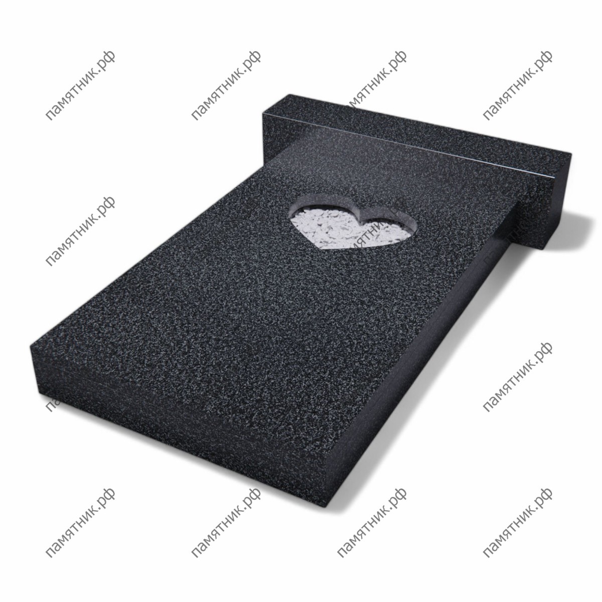 Трогательная и глубоко символичная надгробная плита из габбро-диабаза с вырезом в форме сердца. Этот дизайн позволяет без лишних слов выразить искреннюю любовь и светлую память об ушедшем близком человеке.