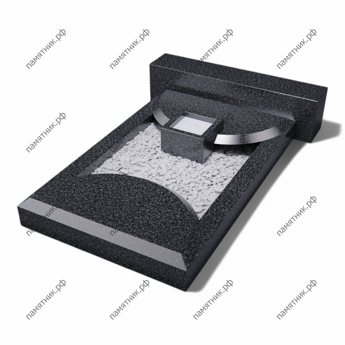 Нестандартная комбинированная плита из габбро-диабаза, сочетающая открытые зоны и функциональные гранитные элементы. Выразительный дизайн привлекает внимание плавностью линий и контрастом фактур.