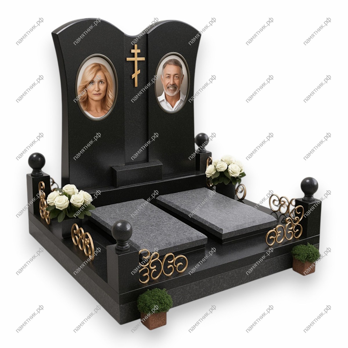 - Материал: Черный гранит + светло-серый гранит.