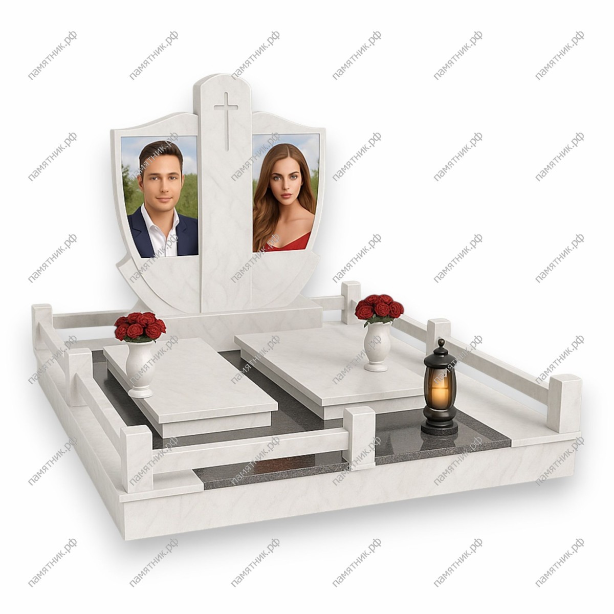 - Двойное светлое надгробие на контрастном темном основании.