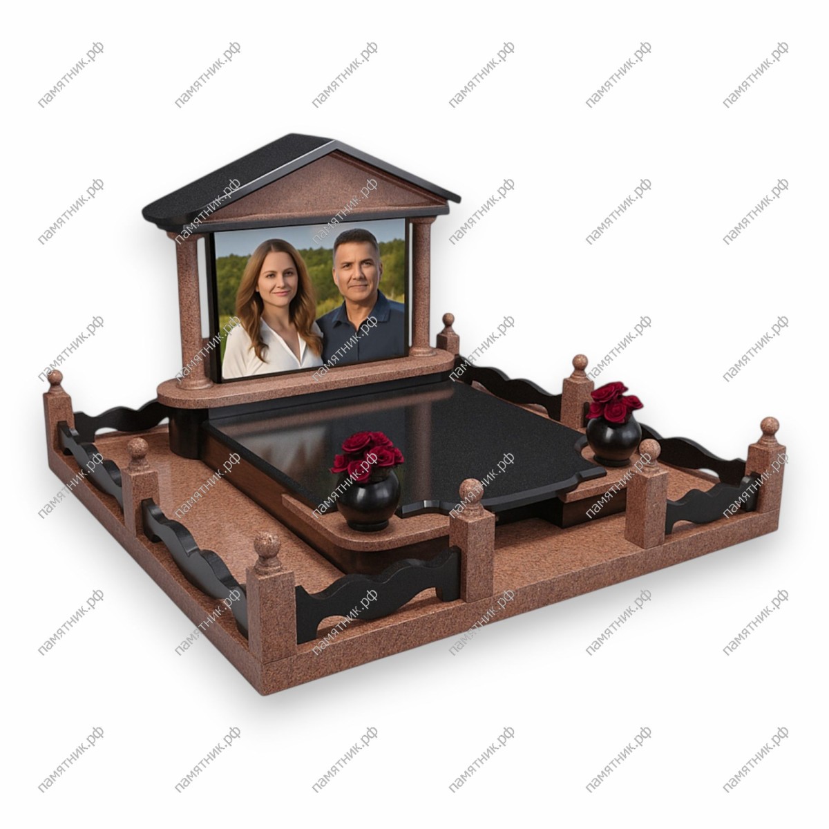 - Материал: Красно-коричневый гранит + черный гранит.
