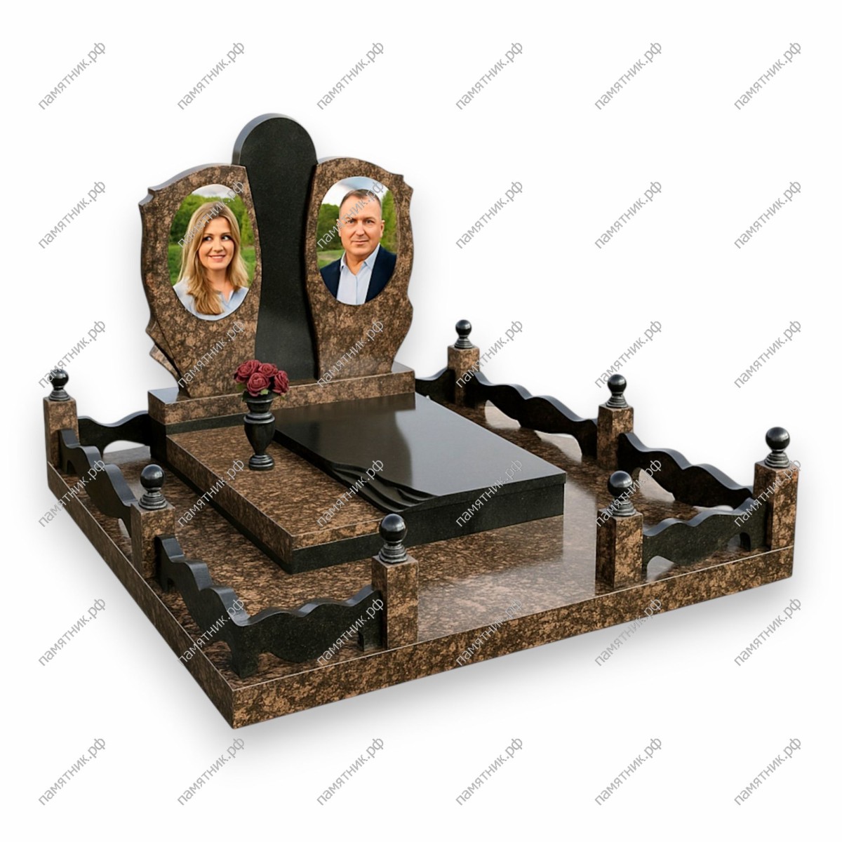 - Материал: Коричневый гранит + черный гранит.
