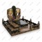 Выразительный трехсоставной мемориал с богатой геометрией форм. Фигурные боковые стелы из фактурного коричневого гранита гармонично дополнены высокой центральной вставкой из черного камня.