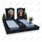 - Два светлых надгробных камня с закругленными краями на черном цоколе.