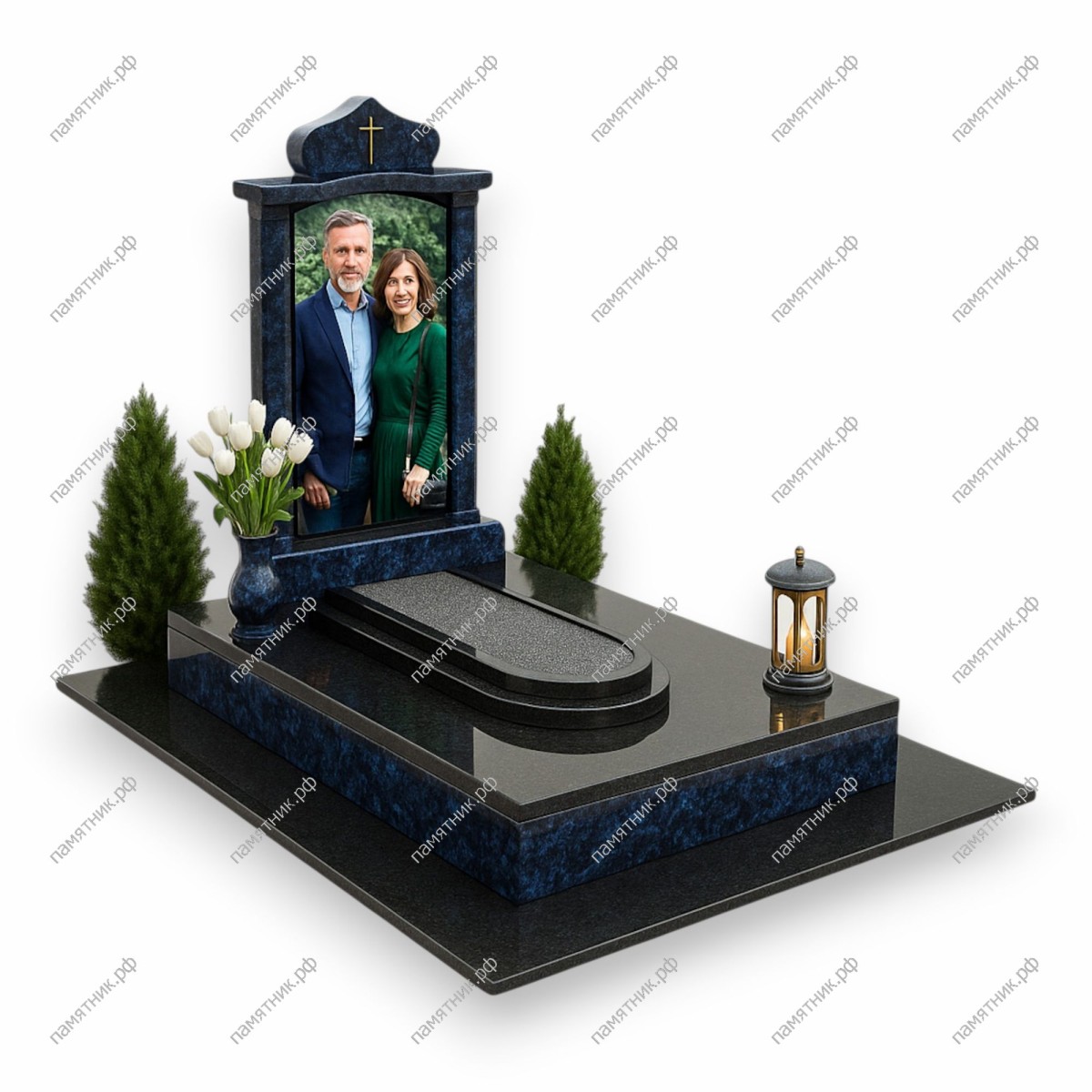 - Двухуровневые закрытые надгробные плиты в цвет стел.