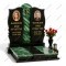Роскошный комплекс, в котором глубокий черный цвет гармонично сочетается с выразительной текстурой зеленого гранита. Черные стелы с волнистыми внешними краями разделены высокой зеленой колонной. Надгробные плиты также выполнены из зеленого камня, создавая богатый цветовой ансамбль.