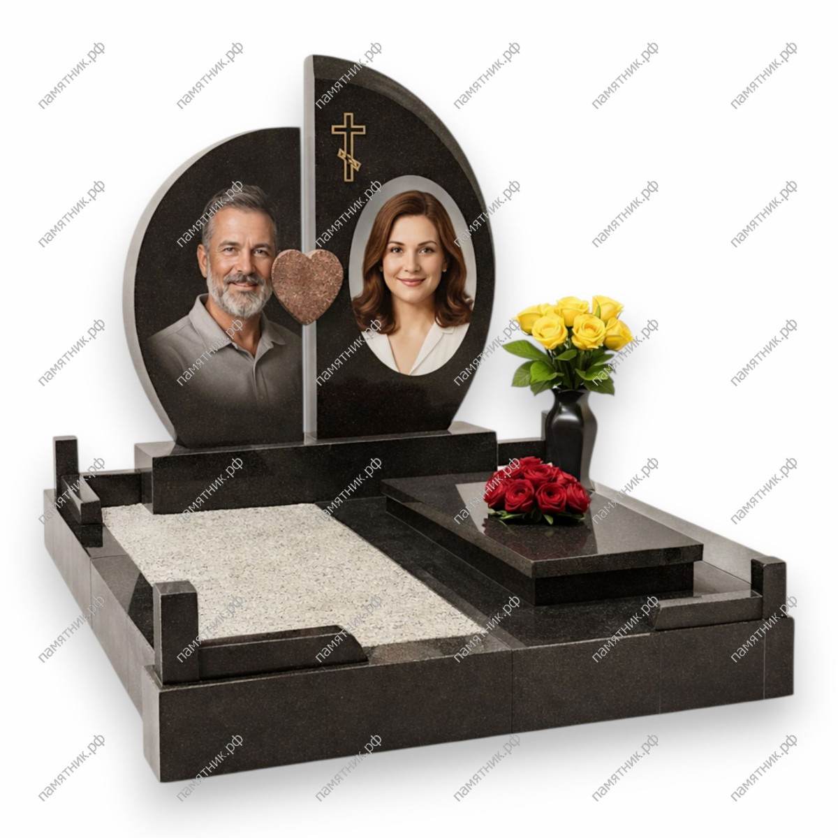 Материал: Черный гранит + Красный гранит (элемент сердца).