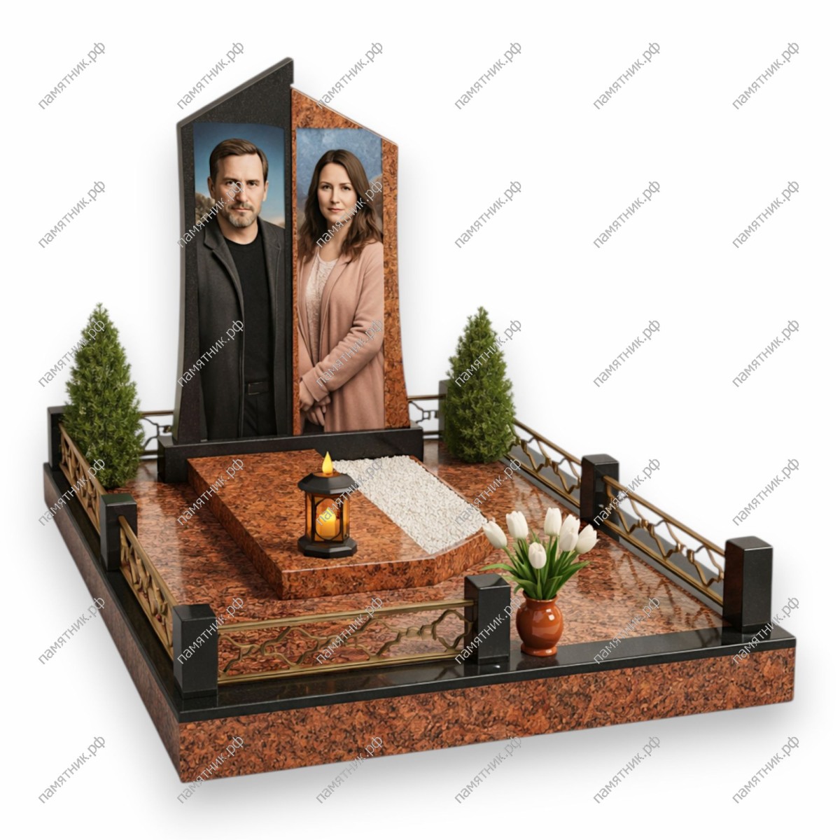 Материал: Черный гранит + Красно-коричневый гранит.